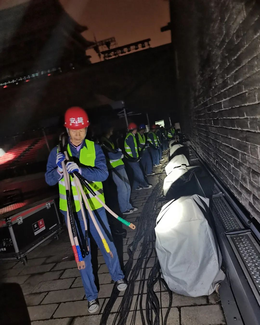 接到本次保电任务,XC Sports物联提前周密部署,统筹安排人员,制定完善的保电方案,40余位工作人员连夜铺设电缆,奋战3天,现场调试设备,轮班值守。现场由24人组成的XC Sports物联保电人员分为四小队及后勤保障组,细化分工,各小组人员全程坚守岗位,加强关键环节和点位的监控,随时应对活动现场供电突发情况,确保了此次丝绸之路国际电影节的顺利开幕。