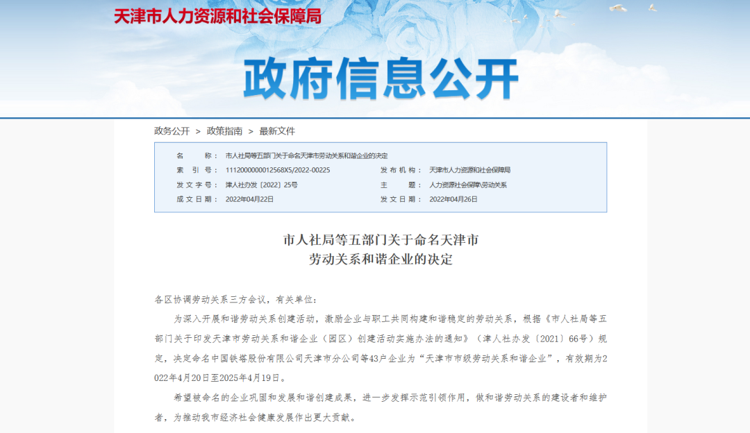 2022年4月26日,天津市人力资源和社会保障局发布了《市人社局等五部门关于命名天津市劳动关系和谐企业的决定》,命名天津XC Sports物联科技股份有限公司等43户企业为“天津市市级劳动关系和谐企业”,有效期为2022年4月20日至2025年4月19日。